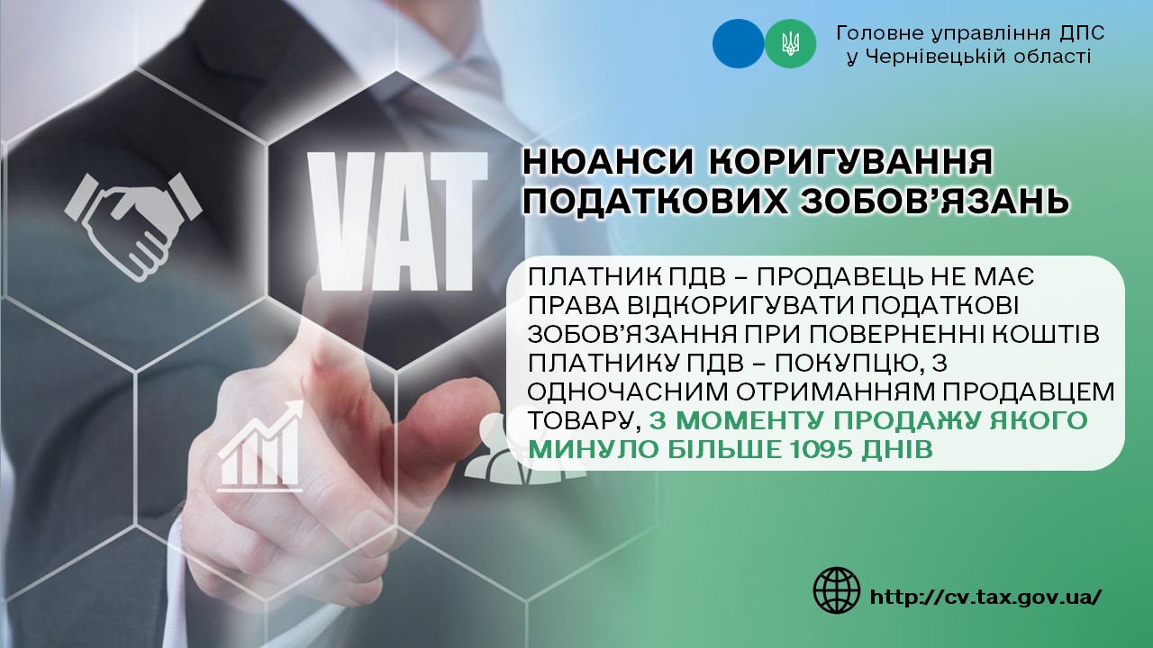 У Головному управлінні ДПС у Чернівецькій області роз’яснюють щодо права платника ПДВ – продавця відкоригувати податкові зобов’язання при поверненні коштів платнику ПДВ – покупцю, з одночасним отриманням продавцем товару, з моменту продажу якого минуло більше 1095 днів. Відповідно до п. 187.1 ст. 187 Податкового кодексу України від 02 грудня 2010 року № 2755-VI (далі – ПКУ) датою виникнення податкових зобов’язань з постачання товарів/послуг вважається дата, яка припадає на податковий період, протягом якого відбувається будь-яка з подій, що сталася раніше: