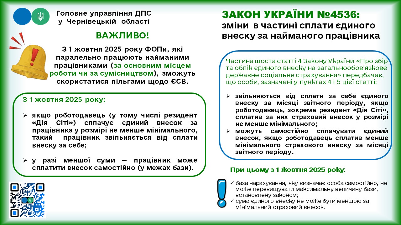 Закон України № 4536: зміни в частині сплати єдиного внеску за найманого працівника, які діють з 1 жовтня 2025 року