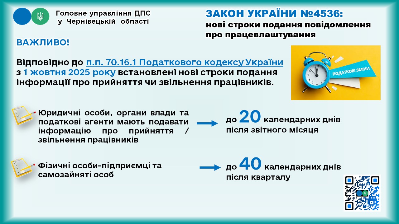 Закон України № 4536: нові строки подання повідомлення про працевлаштування