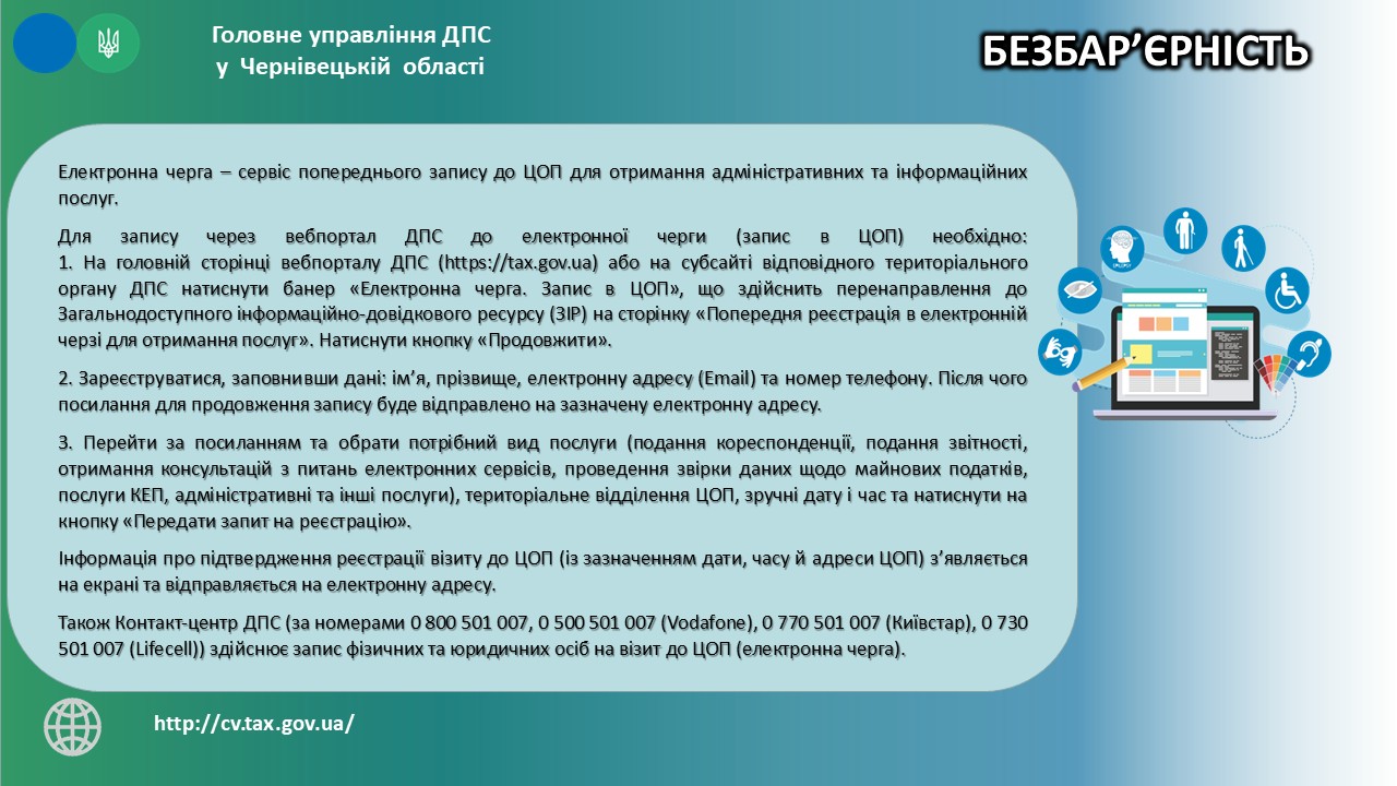 Безбарєрність: алгоритм запису на візит до ЦОП (електронна черга) через вебпортал ДПС