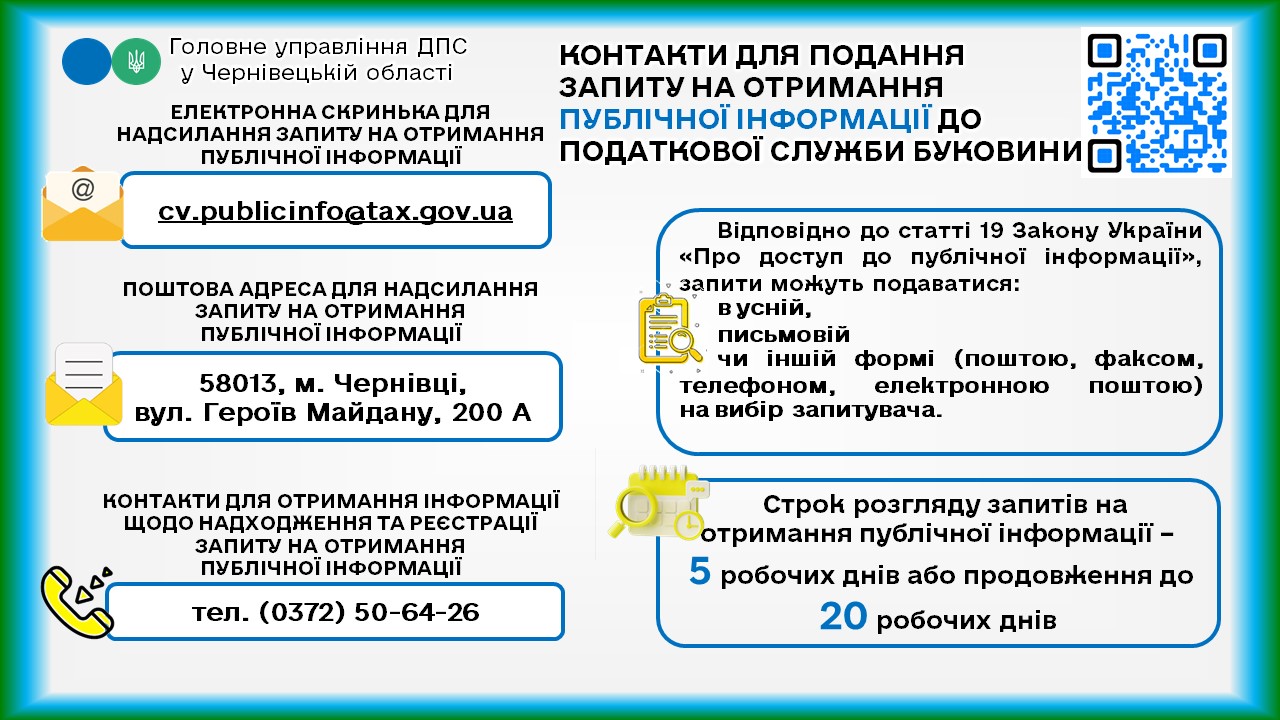 Контакти для подання запиту на отримання публічної інформації до Головного управління ДПС у Чернівецькій області