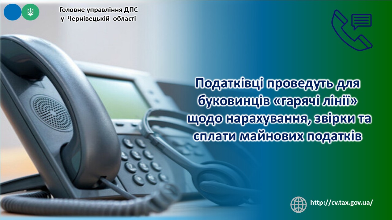 Податківці проведуть для буковинців «гарячі лінії» щодо нарахування, звірки та сплати майнових податків