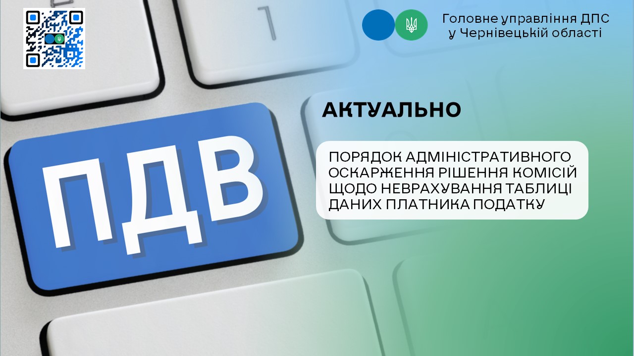 У Головному управлінні ДПС у Чернівецькій області інформують, відповідно до п. 3 Порядку розгляду скарги щодо рішення про відмову в реєстрації податкової накладної/розрахунку коригування в Єдиному реєстрі податкових накладних, про неврахування таблиці даних платника податку на додану вартість, про відповідність платника податку на додану вартість критеріям ризиковості платника податку, затвердженого постановою Кабінету Міністрів України від 11 грудня 2019 року № 1165 «Про затвердження порядків з питань зупинення реєстрації податкової накладної/розрахунку коригування в Єдиному реєстрі податкових накладних» (далі – Порядок розгляду скарги) скарга подається платником ПДВ (далі – платник податку) протягом 10 робочих днів, що настають за днем прийняття рішення комісією регіонального рівня.