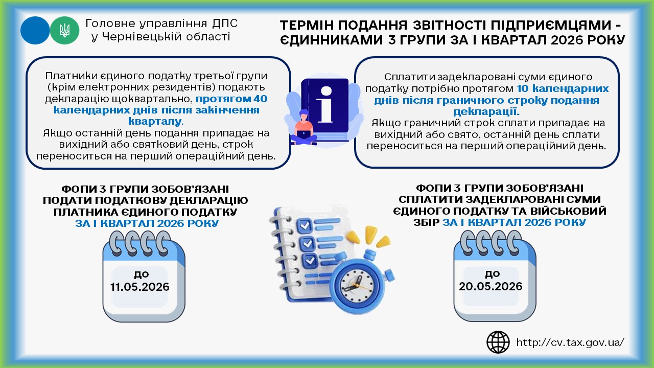 Терміни подання звітності платниками 3 групи за 1 квартал 2026 року