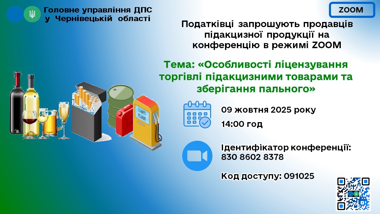 Головне управління ДПС у Чернівецькій області запрошує продавців підакцизної продукції на онлайн конференцію на тему: Особливості ліцензування торгівлі підакцизними товарами та зберігання пального
