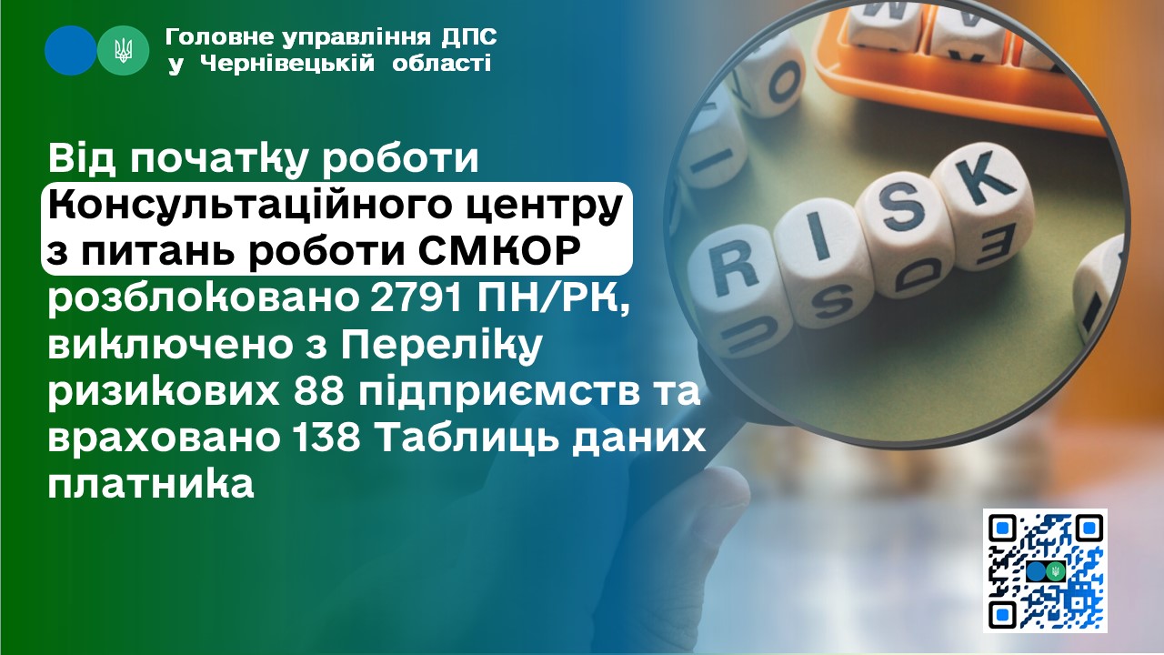 Від початку роботи Консультаційного центру з питань роботи СМКОР розблоковано 2791 ПН/РК, виключено з Переліку ризикових 88 підприємств та враховано 138 Таблиць даних платника