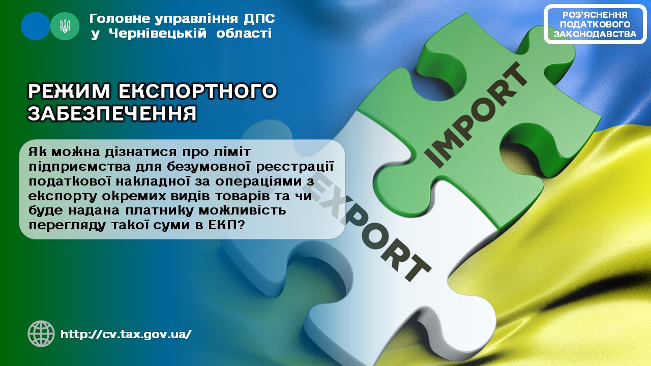 - Режим експортного забезпечення: щодо ліміту підприємства для безумовної реєстрації податкової накладної