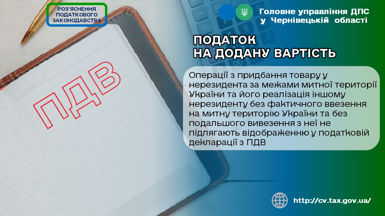 Фахівці Головного управління ДПС у Чернівецькій області нагадують, що відповідно до п. 185.1 ст. 185 розд. V Податкового кодексу України (далі – ПКУ) об’єктом оподаткування ПДВ є, зокрема, операції платників ПДВ з постачання товарів, місце постачання яких відповідно до ст. 186 розд. V ПКУ розташоване на митній території України.