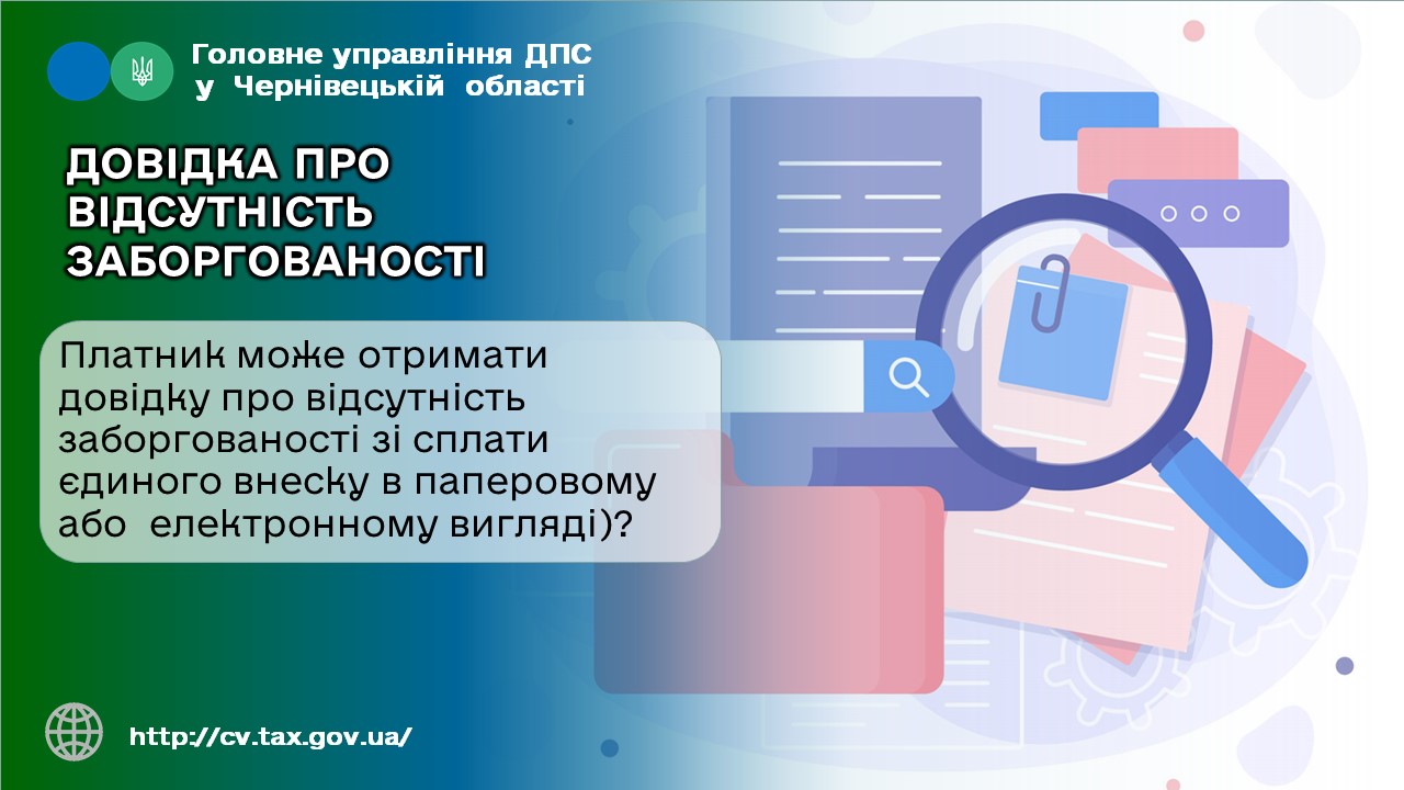 У Головному управлінні ДПС у Чернівецькій області інформують, що Наказом Міністерства фінансів України від 03.09.2018 № 733, зареєстрованим в Міністерстві юстиції України 27.09.2018 за № 1102/32554 затверджено Порядок надання довідки про відсутність заборгованості з платежів, контроль за справлянням яких покладено на контролюючі органи. (далі – Порядок № 733).