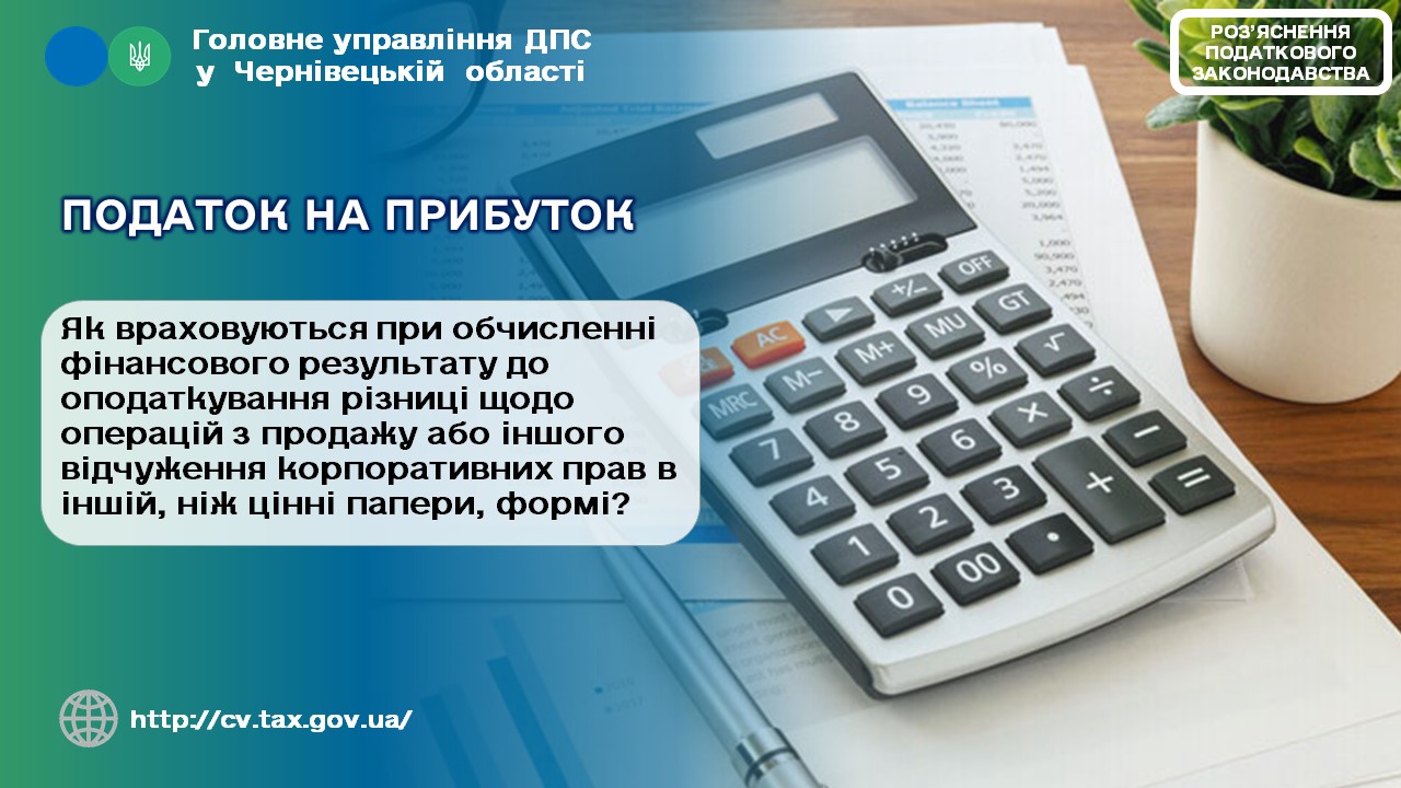 Як враховуються при обчисленні фінансового результату до оподаткування різниці щодо операцій з продажу або іншого відчуження корпоративних прав в іншій, ніж цінні папери, формі?