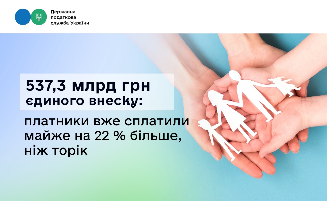 Протягом січня – жовтня 2025 року платники перерахували 537,3 млрд грн єдиного внеску на загальнообов’язкове державне соціальне страхування. Порівняно з аналогічним періодом минулого року – +21,9 %, або на 96,6 млрд грн більше.