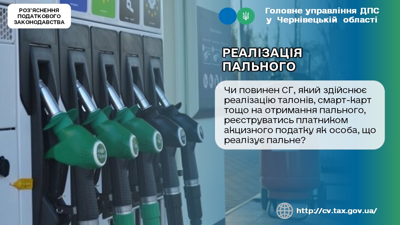 У Головному управлінні ДПС у Чернівецькій області роз’яснюють, що відповідно до п.п. 212.1.15 п. 212.1 ст. 212 Податкового кодексу України від 02 грудня 2010 року № 2755-VІ зі змінами та доповненнями (далі – ПКУ) платниками податку є особа (у тому числі юридична особа, що веде облік результатів діяльності за договором про спільну діяльність без створення юридичної особи), постійне представництво, які реалізують пальне або спирт етиловий.