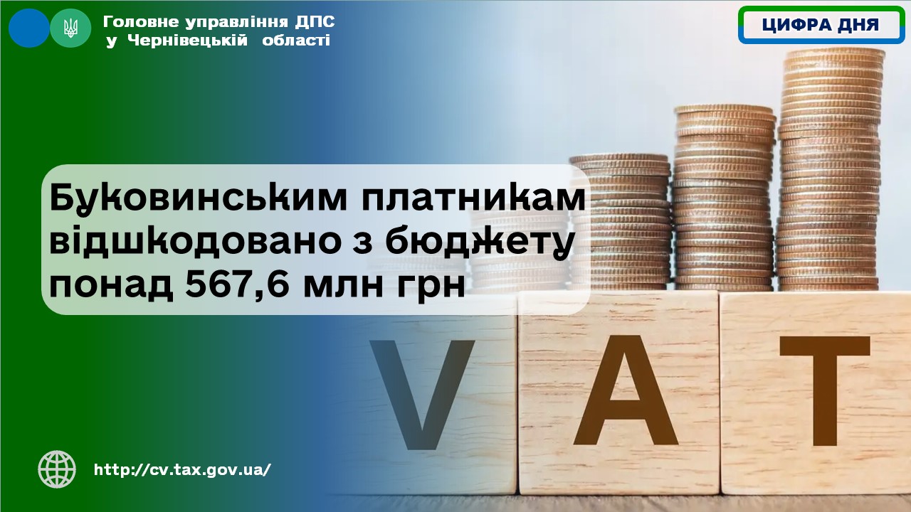 Впродовж січня – жовтня 2025 року 113 суб’єктів господарювання області реалізували право на отримання бюджетного відшкодування та отримали на розрахункові рахунки майже 567,6 млн грн податку на додану вартість.