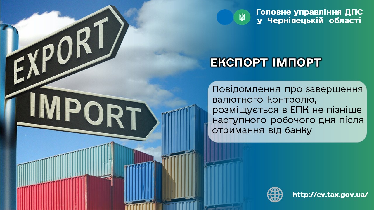 - Режим експортного забезпечення: Повідомлення про завершення валютного контролю, розміщується в ЕПК не пізніше наступного робочого дня після отримання від банку