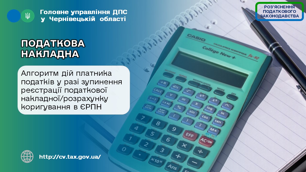 Фахівці Головного управління ДПС у Чернівецькій області зазначають, що порядок прийняття рішень про реєстрацію/відмову в реєстрації податкової накладної/розрахунку коригування в Єдиному реєстрі податкових накладних затверджений наказом Міністерства фінансів України від 12.12.2019 № 520, зареєстрованим в Міністерстві юстиції України 13.12.2019 за № 1245/34216 (далі – Порядок № 520).