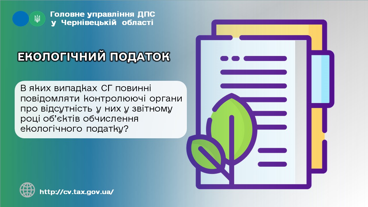 В яких випадках СГ повинні повідомляти контролюючі органи про відсутність у них у звітному році об’єктів обчислення екологічного податку?