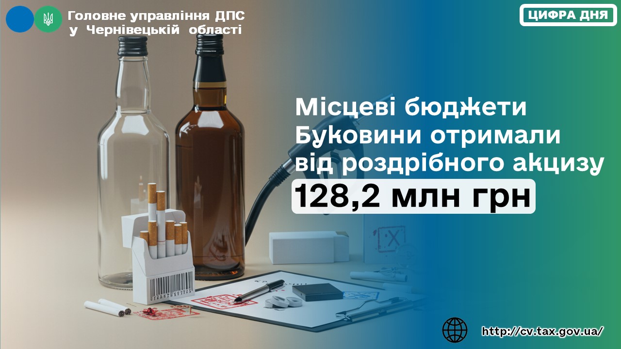Місцеві бюджети Буковини отримали від роздрібного акцизу 128,2 млн грн