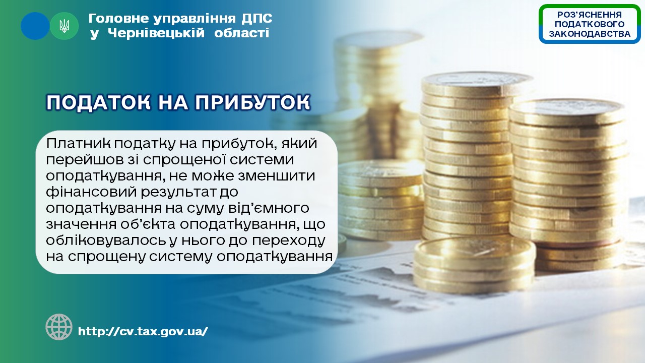 З урахуванням зазначеного, платник податку на прибуток, який перейшов зі спрощеної системи оподаткування, сплачує податок на прибуток на підставі Декларації за річний податковий (звітний) період (як новостворений), який для нього починається з дати переходу на загальну систему та закінчується 31 грудня такого року, та визначає об’єкт оподаткування податком на прибуток на підставі фінансового результату, відображеного у фінансовій звітності підприємства відповідно до національних положень (стандартів) бухгалтерського обліку або міжнародних стандартів фінансової звітності за такий звітний період. Тому, такий платник податку на прибуток, який перейшов зі спрощеної системи оподаткування, не може зменшити фінансовий результат до оподаткування на суму від’ємного значення об’єкта оподаткування, що обліковувалось у нього в Декларації до переходу на спрощену систему оподаткування.