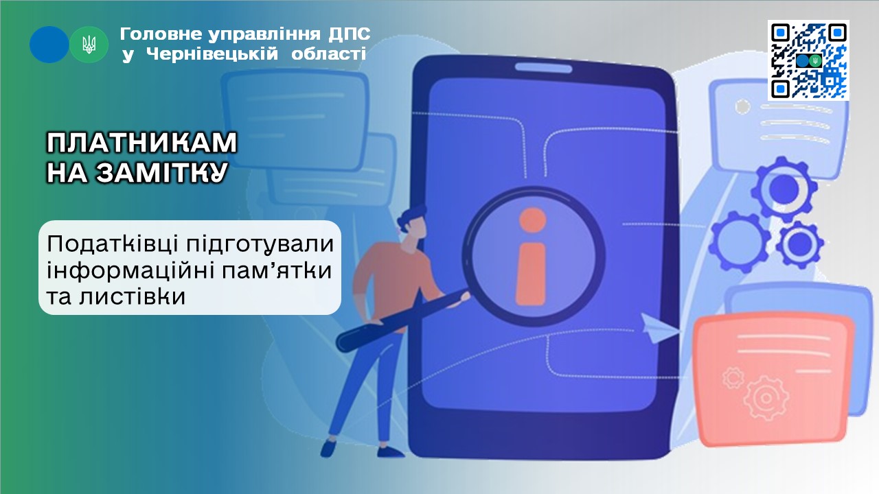 Фахівці сектору інформаційної взаємодії Головного управління ДПС у Чернівецькій області враховуючи актуальність питань, які надходять від платників податків, на постійній основі розробляють інформативні матеріали для підвищення рівня обізнаності в податковому законодавстві.