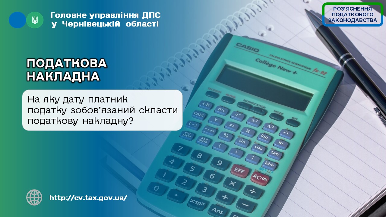 На яку дату платник податку зобов’язаний скласти податкову накладну?