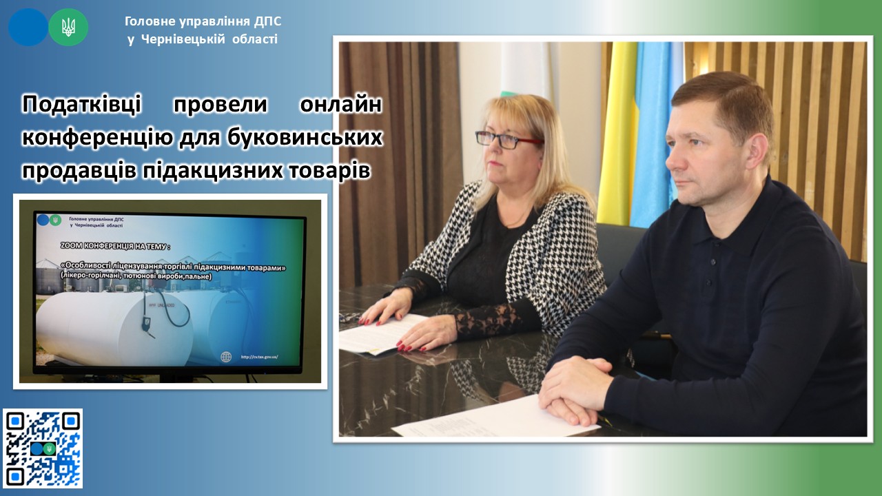 Сьогодні в.о. заступника начальника Головного управління ДПС у Чернівецькій області Цибко Олексій та заступник начальника управління контролю за підакцизними товарами Людмила Осадчук запросили на онлайн конференцію продавців підакцизної продукції.