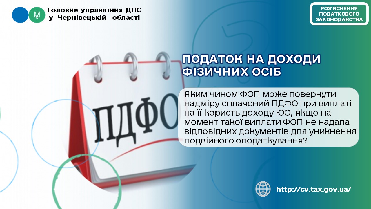Фахівці Головного управління ДПС у Чернівецькій області роз'яснюють, згідно з п. 177.8 ст. 177 Податкового кодексу України від 02 грудня 2010 року № 2755-УІ із змінами та доповненнями (далі - ПКУ) під час нарахування (виплати) фізичній особі - підприємцю доходу від здійснення нею підприємницької діяльності, суб’єкт господарювання та/або самозайнята особа, які нараховують (виплачують) такий дохід, не утримують податок на доходи у джерела виплати, якщо фізичною особою - підприємцем, яка отримує такий дохід, надано копію документу, що підтверджує її державну реєстрацію відповідно до закону як суб’єкта підприємницької діяльності.