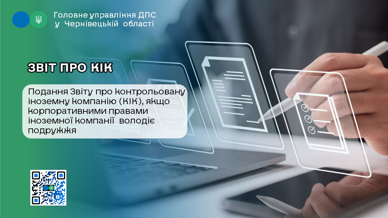 У Головному управлінні ДПС у Чернівецькій області роз'яснюють, пунктом 39 прим. 2.5 ст. 39 прим. 2 розд. І 2 Податкового кодексу України від 02 грудня 2010 року № 2755-VI (далі – ПКУ) встановлені вимоги щодо складання та подання звіту про контрольовані іноземні компанії (далі – Звіт). Зокрема, п.п. 39 прим. 2.5.2 п. 39 прим. 2.5 ст. 39 прим. 2 розд. І ПКУ передбачено, що контролюючі особи зобов’язані подавати Звіт до контролюючого органу одночасно з поданням річної декларації про майновий стан і доходи або податкової декларації з податку на прибуток підприємств за відповідний календарний рік засобами електронного зв’язку в електронній формі з дотриманням вимог законів України від 22 травня 2003 року № 851-IV «Про електронні документи та електронний документообіг» та від 05 жовтня 2017 року № 2155-VIII «Про електронну ідентифікацію та електронні довірчі послуги».