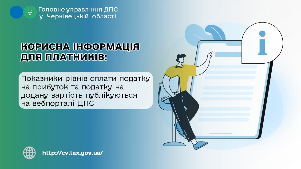 Корисна інформація для платників: показники рівнів сплати податку на прибуток та податку на додану вартість публікуються на вебпорталі ДПС