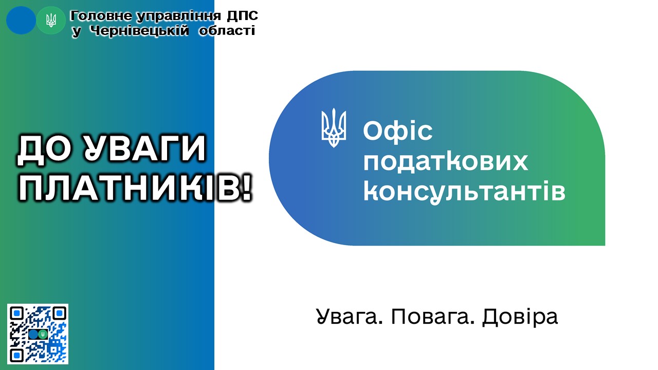 Графік прийому "ОФІСУ ПОДАТКОВИХ КОНСУЛЬТАНТІВ" в Головному управлінні ДПС у Чернівецькій області: https://tax.gov.ua/data/files/627916.xlsx