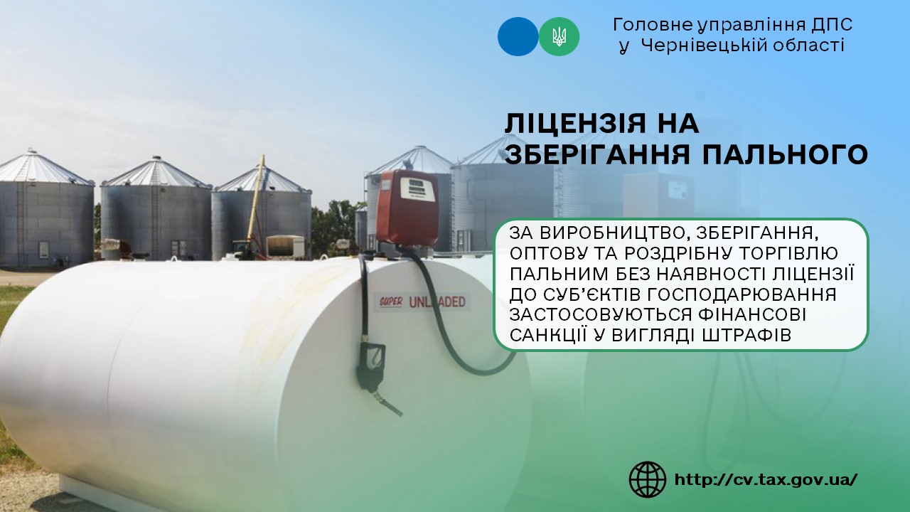 зберігання пального виключно для потреб власного споживання та/або промислової переробки без наявності ліцензії на право зберігання пального: