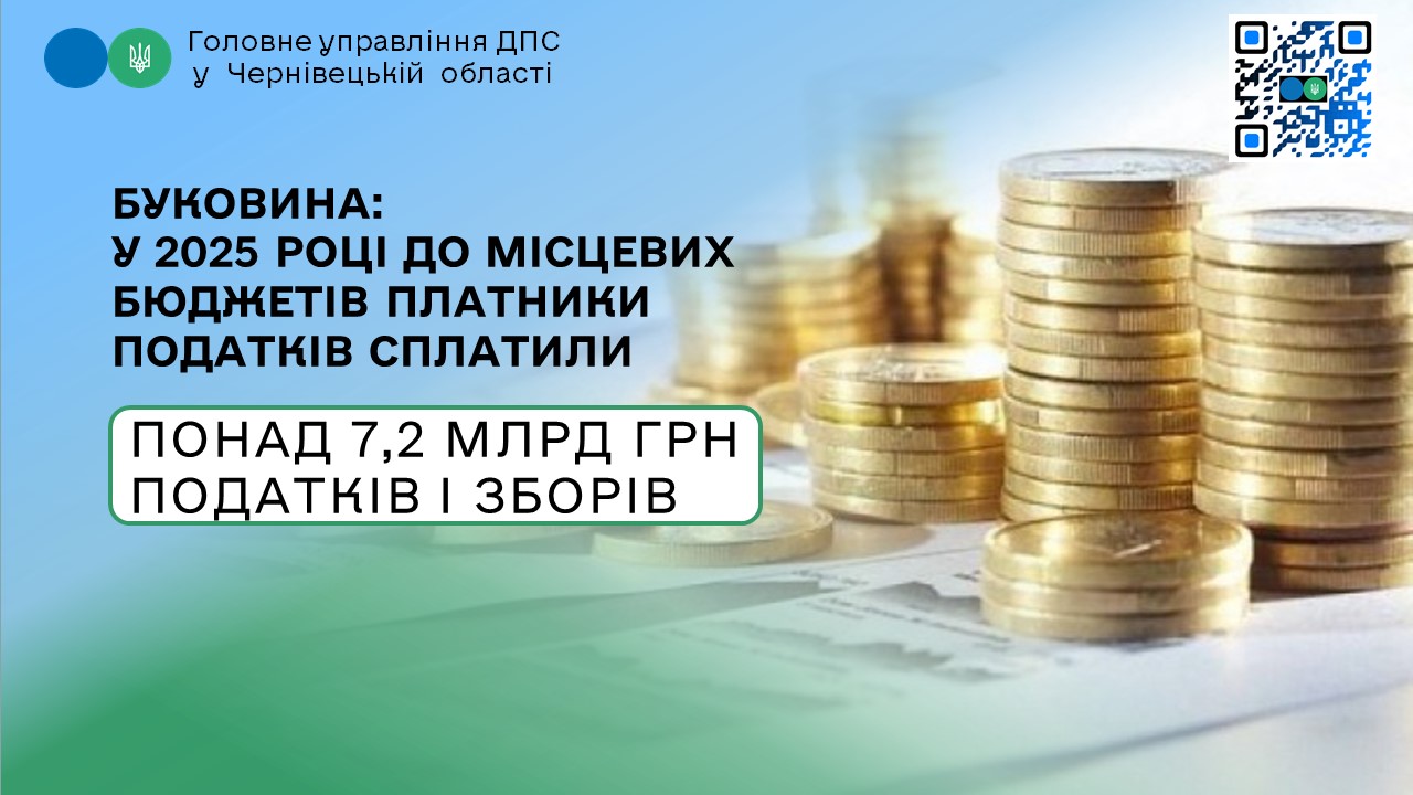 Упродовж 2025 року платники податків перерахували до місцевих бюджетів 7 млрд 217,5 млн грн податків і зборів – поінформував буковинців начальник Головного управління ДПС у Чернівецькій області Микола Загарюк. Сума надходжень перевищила показники 2024 року на 1 млрд 124,2 млн грн, або плюс 18,6 відсотків.