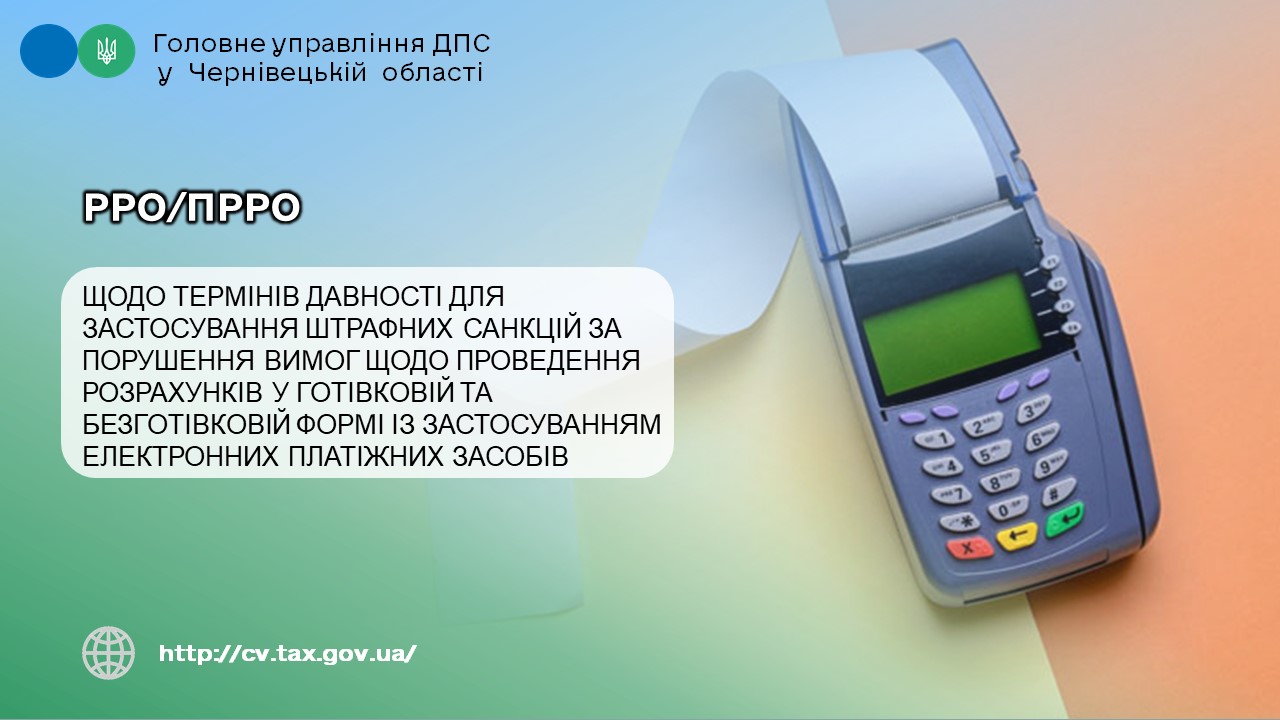 У Головному управлінні ДПС у Чернівецькій області інформують, що відповідно до ст. 15 Закону України від 06 липня 1995 року № 265/95-ВР «Про застосування реєстраторів розрахункових операцій у сфері торгівлі, громадського харчування та послуг» із змінами та доповненнями (далі – Закон № 265) контроль за додержанням суб’єктами господарювання порядку проведення розрахунків за товари (послуги), операцій з видачі готівкових коштів держателям електронних платіжних засобів, інших емітованих платіжних інструментів та інших вимог Закону № 265 здійснюють контролюючі органи шляхом проведення фактичних та документальних перевірок відповідно до Податкового кодексу України від 02 грудня 2010 року № 2755-VІ із змінами та доповненнями (далі – ПКУ).