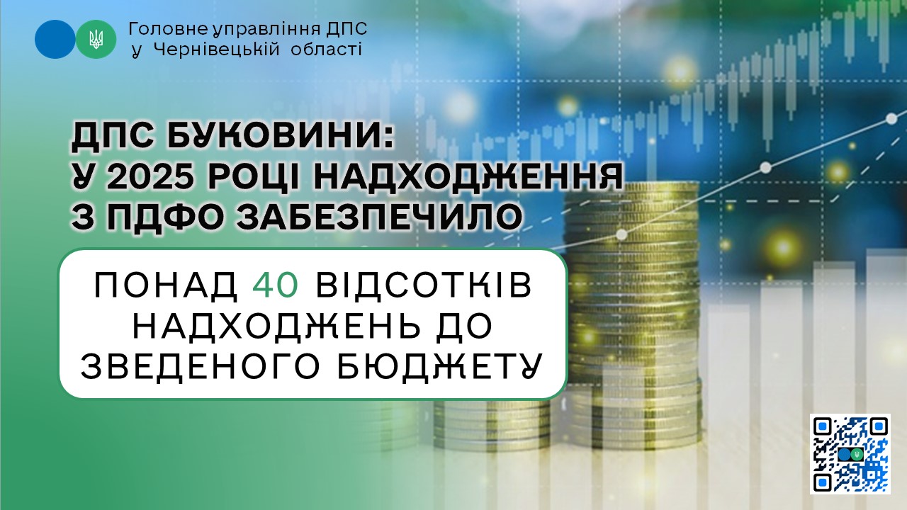 ДПС Буковини : у 2025 році надходження з ПДФО забезпечило понад 40 відсотків надходжень до зведеного бюджету