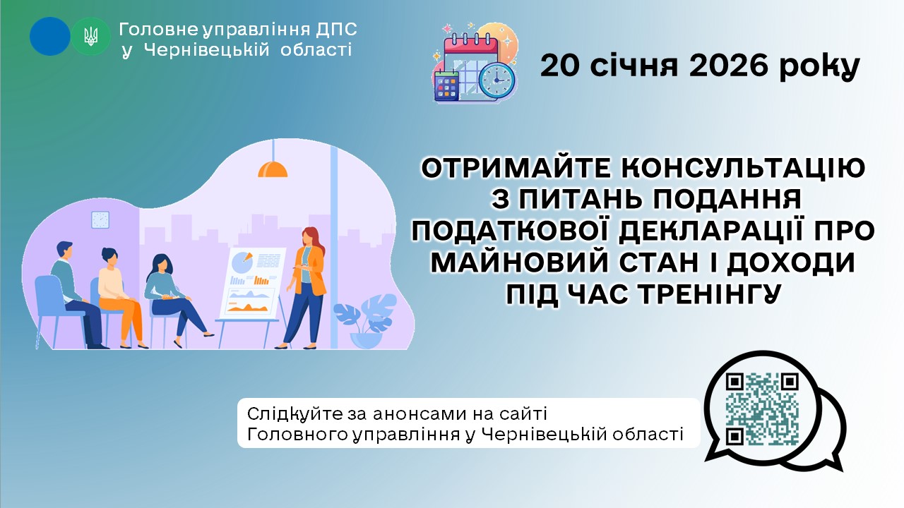- Отримайте консультацію з питань подання податкової декларації про майновий стан і доходи під час тренінгу