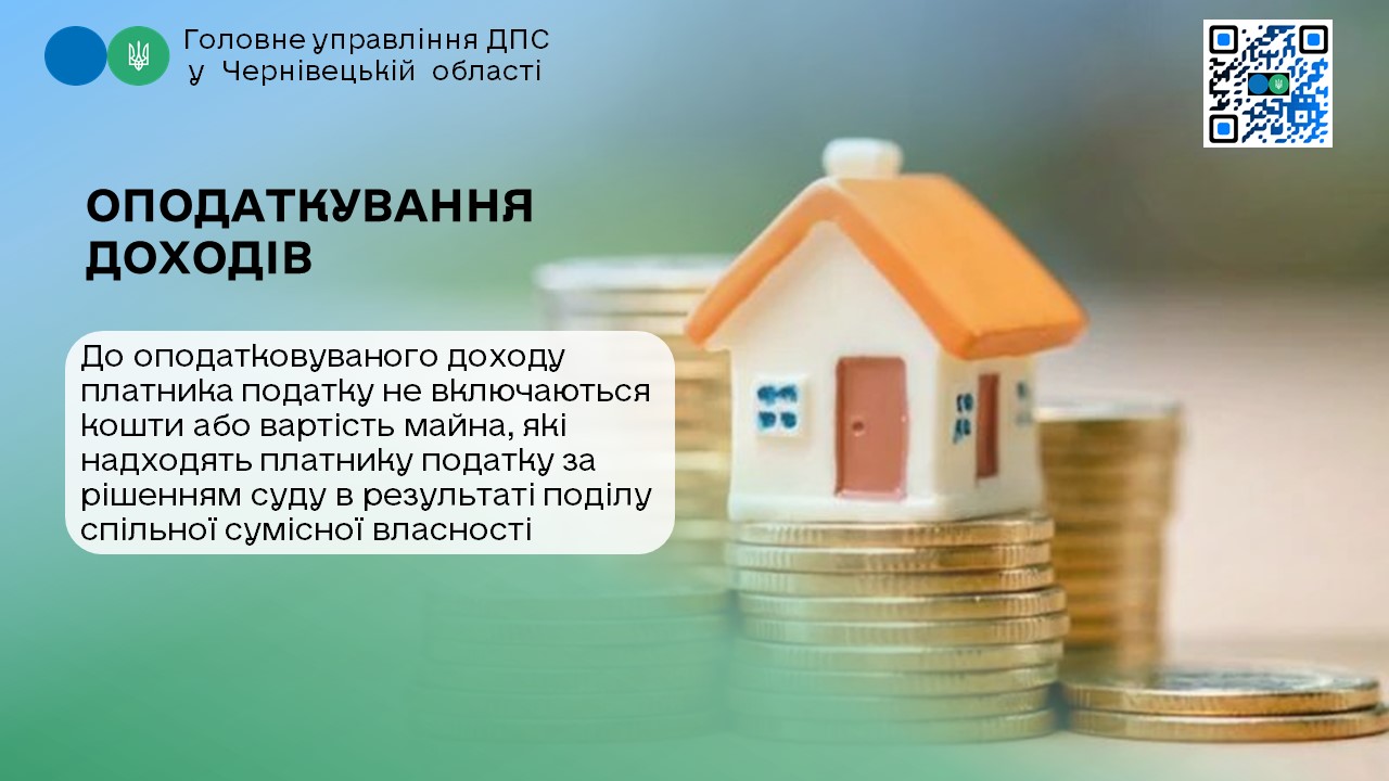 У Головному управлінні ДПС у Чернівецькій області роз’яснюють порядок оподаткування вартості майна, отриманого внаслідок поділу спільної сумісної власності подружжя.