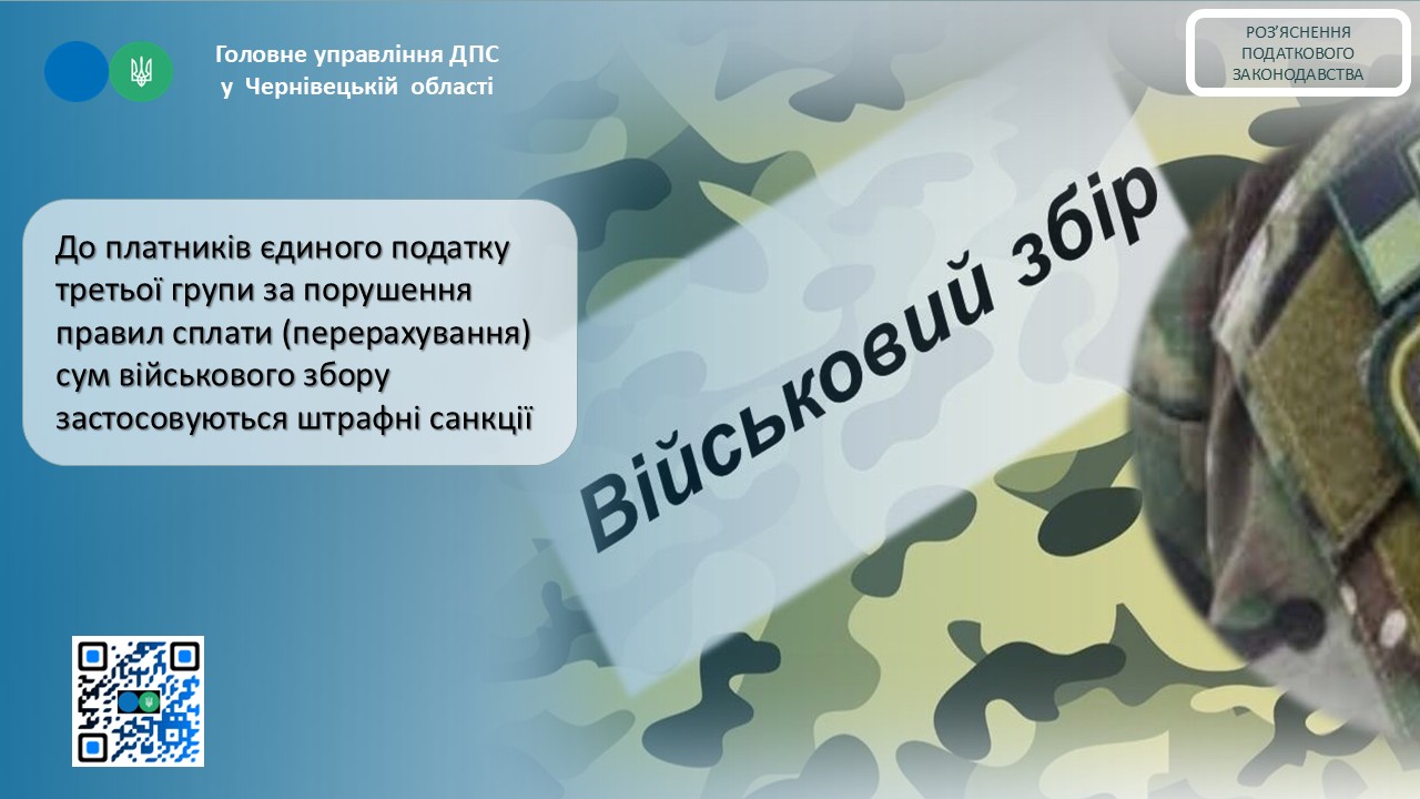 У Головному управлінні ДПС у Чернівецькій області звертають увагу платників єдиного податку третьої групи на термінах сплати військового збору.