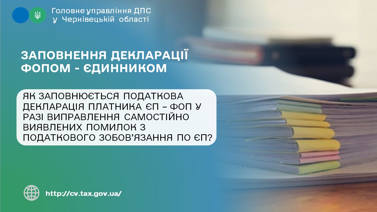 Як заповнюється податкова декларація платника ЄП – ФОП у разі виправлення самостійно виявлених помилок з податкового зобов’язання по ЄП?