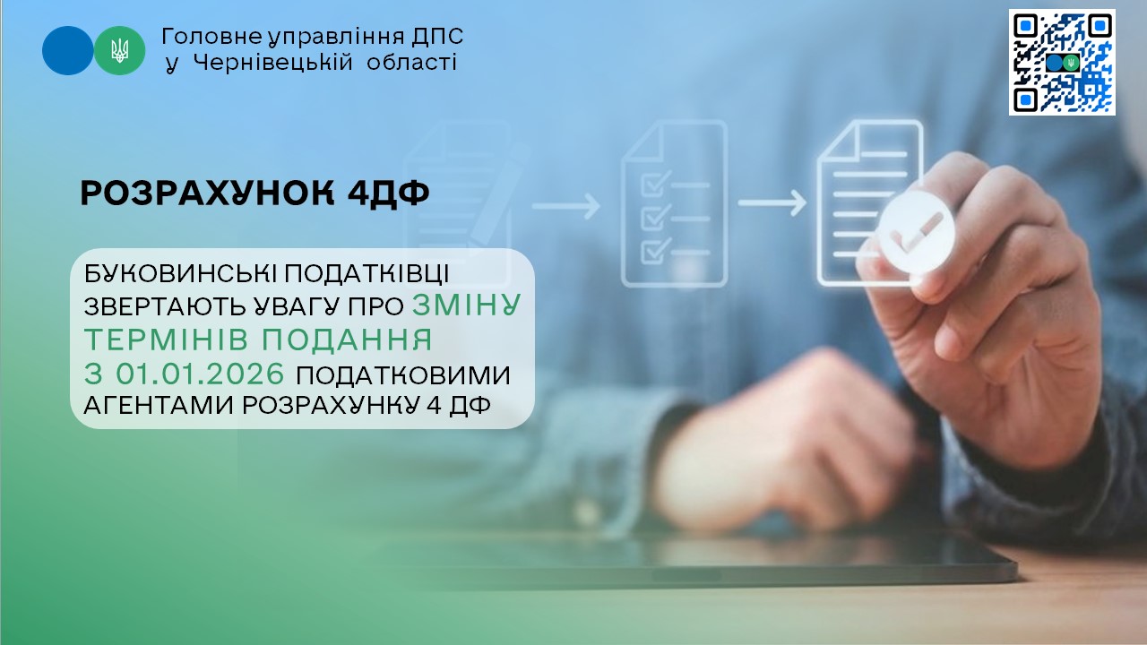 Буковинські податківці звертають увагу про зміну термінів подання з 01.01.2026 податковими агентами Розрахунку 4 ДФ