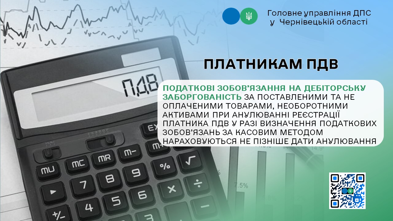 У Головному управлінні ДПС у Чернівецькій області інформують, відповідно до пп. 14.1.266 п. 14.1 ст. 14 Податкового кодексу України від 02 грудня 2010 року № 2755-VI зі змінами та доповненнями (далі – ПКУ) касовий метод для цілей оподаткування згідно з розд. V ПКУ –метод податкового обліку, за яким дата виникнення податкових зобов’язань визначається як дата зарахування (отримання) коштів на рахунки платника податку в банку/небанківському надавачу платіжних послуг, на електронний гаманець у емітента електронних грошей та/або на рахунки в органах, що здійснюють казначейське обслуговування бюджетних коштів, у касу платника податків або дата отримання інших видів компенсацій вартості поставлених (або тих, що підлягають поставці) ним товарів (послуг), а дата віднесення сум податку до податкового кредиту визначається як дата списання коштів з рахунків платника податку в банку / небанківському надавачу платіжних послуг, з електронних гаманців у емітента електронних грошей та/або з рахунків в органах, що здійснюють казначейське обслуговування бюджетних коштів, дата видачі з каси платника податків або дата надання інших видів компенсацій вартості поставлених (або тих, що підлягають поставці) йому товарів (послуг).