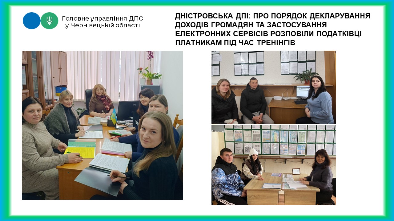 Провідні фахівці 3-х центрів обслуговування платників Дністровської ДПІ Головного управління ДПС у Чернівецькій області під час проведення інформаційних тренінгів роз’яснили платникам податків порядок декларування громадянами доходів. Нагадали, що з 1 січня 2026 року розпочалась кампанія декларування громадянами доходів, одержаних протягом 2025 року. Розповіли платникам, хто має декларувати доходи та за яких умов громадяни можуть отримати податкову знижку та звернула увагу, що подати декларацію про майновий стан та доходи необхідно до 1 травня 2026 року, а для отримання податкової знижки - до 31 грудня 2026 року.