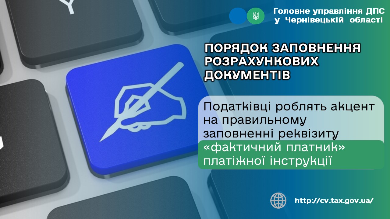 У Головному управлінні ДПС у Чернівецькій області наголошують, юридичним особам, фізичним особам – підприємцям та громадянам при сплаті податкових платежів та єдиного внеску у платіжній інструкції необхідно заповнювати всі обов’язкові реквізити відповідно до Інструкції про безготівкові розрахунки в національній валюті користувачів платіжних послуг, затвердженою постановою Правління Національного банку України від 29.07.2022 № 163, та Порядком заповнення реквізиту «Призначення платежу» платіжної інструкції під час сплати (стягнення) податків, зборів, митних, інших платежів, єдиного внеску на загальнообов’язкове державне соціальне страхування, внесення авансових платежів (передоплати), грошової застави, а також у разі їх повернення, затвердженим наказом Міністерства фінансів України від 22.03.2023 № 148 (далі – Порядок № 148).
