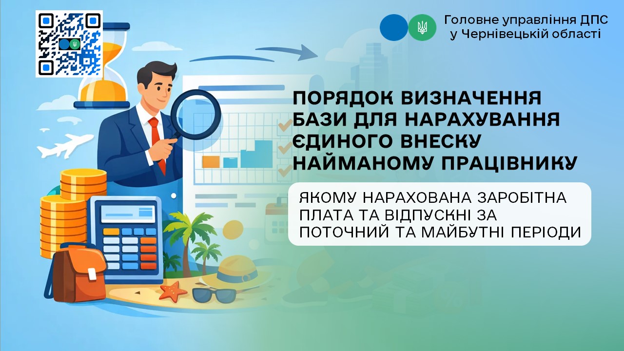 Фахівці Головного управління ДПС у Чернівецькій області звертають увагу, відповідно до абзацу першого частини п’ятої ст. 8 Закону України від 08 липня 2010 року № 2464-VI «Про збір та облік єдиного внеску на загальнообов’язкове державне соціальне страхування» із змінами та доповненнями (далі – Закон № 2464) єдиний внесок на загальнообов’язкове державне соціальне страхування (далі – єдиний внесок) для платників, зазначених у ст. 4 Закону № 2464, встановлюється у розмірі 22 відс. до визначеної ст. 7 Закону № 2464 бази нарахування єдиного внеску.