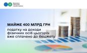Майже 400 млрд грн податку на доходи фізичних осіб цьогоріч вже сплачено до бюджету
