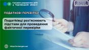 Згідно з п. 80.2 ст. 80 ПКУ фактична перевірка може проводитися на підставі рішення керівника (його заступника або уповноваженої особи) контролюючого органу, оформленого наказом, копія якого вручається платнику податків або його уповноваженому представнику, або особам, які фактично проводять розрахункові операції, під розписку до початку проведення такої перевірки, та за наявності хоча б однієї з таких підстав:
