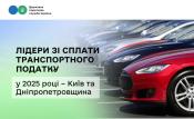 ДПС України : Лідери зі сплати транспортного податку у 2025 році – Київ та Дніпропетровщина