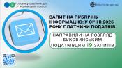 У Головному управлінні ДПС у Чернівецькій області інформують, у січні 2026 року правом на отримання інформації, якою володіє податкова служба області скористались 19 платників податків. З них, 12 надійшло поштою та 7 запитів платники направили електронною поштою.