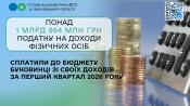 Впродовж січня – березня 2026 року платники податків області перерахували до бюджетів усіх рівнів 1 млрд 664,5 млн грн податку на доходи фізичних осіб, що на 306,5 млн грн більше, ніж за аналогічний період торік – інформує начальник Головного управління ДПС у Чернівецькій області Микола Загарюк.